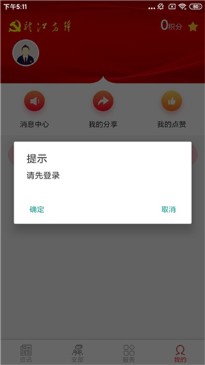 1. 第一步,打开龙江先锋app官方最新版本,接着点击“我的”,随后点击“确定”。
