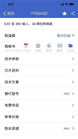 3.查询的芯片信息非常的全面,芯片百科、制造商、技术参数等都有;