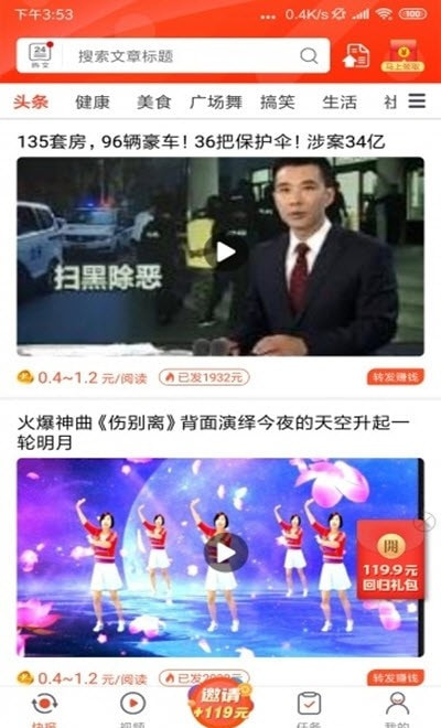 趣快报app,这可是个专业的文章转发赚钱平台呢!它能为你呈上丰富多样的手赚项目、优质的阅读内容,还有最新鲜的时事热点新闻等。而且哦,要是你分享的内容被他人阅读,还能收获额外奖励哟~快来下载趣快报app体验一番吧!