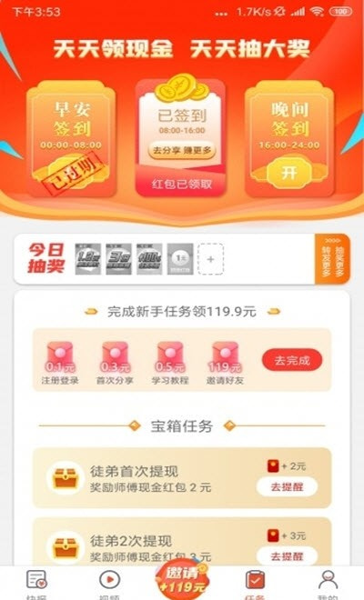 新用户只要下载并注册趣快报app,就能立刻获得0.1元。不仅如此,若完成首次分享以及观看学习教程,还可额外再得0.8元。