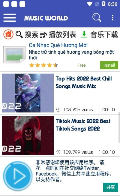 MusicWorld音乐播放器,一款专注于世界音乐的播放软件。在这里,你能畅听全球各国的潮流音乐。不仅如此,其所有音乐的音质都堪称上乘,定能让你满意。更值得一提的是,全部免费收听!对于热爱音乐的用户而言,这无疑是一大福音。快来MusicWorld音乐播放器,开启你的音乐之旅吧!