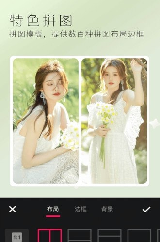 - 模板拼图、风格滤镜自然的照片效果光滑美白你的脸