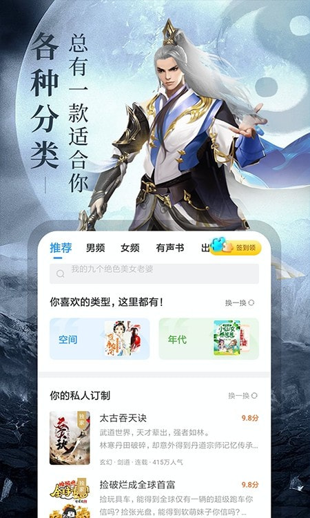 4、热门分类,涵盖都市、言情、玄幻、武侠、穿越、悬疑等各类热门类别。