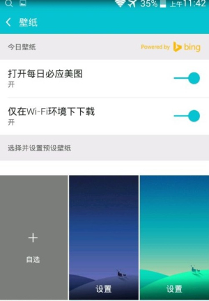 壁纸设置相当不错,能够同步必应的每日美图。就像下图展示的,搜索栏周边的那张图片便是必应每日推送的美图。