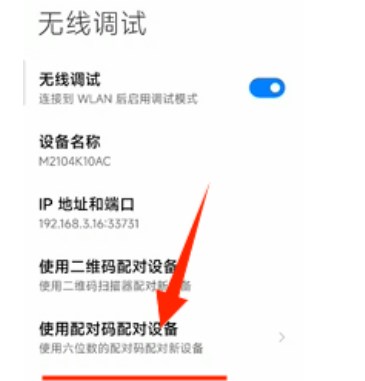 2、开启无线调试后,在其下拉菜单中,选择“使用配对码配对设备”选项。这时,您的设备会自动弹出一个提示框,其中包含WLAN配对码、IP地址及端口号等详细信息。