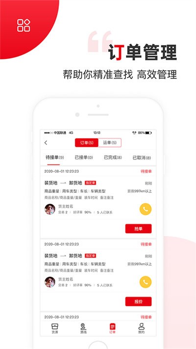 1)快速寻找货源,轻松接单,极大提高了货运司机的工作效率。