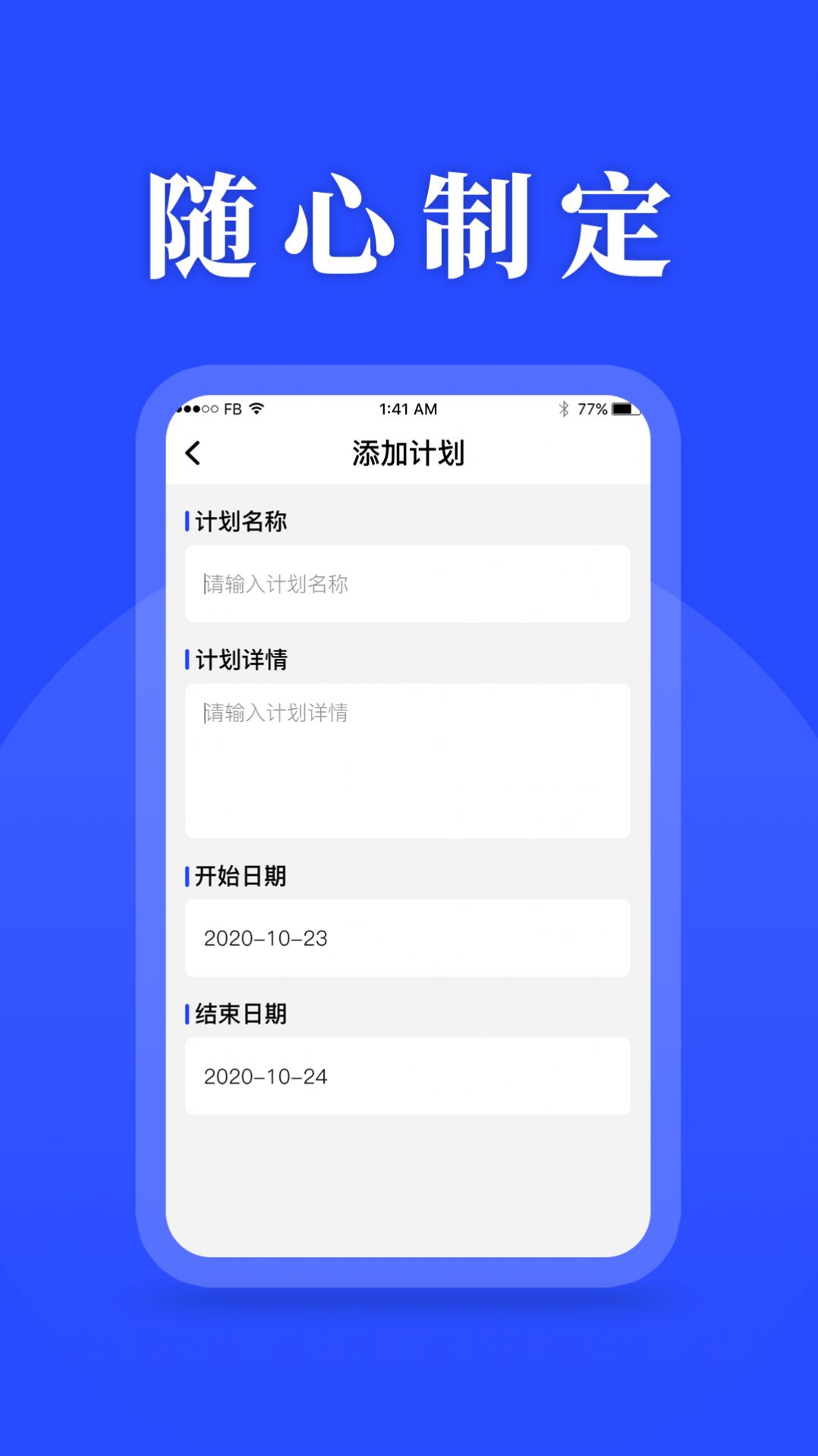1在休息时间,还能利用它来制定并添加新计划,只需完整填写名称和时间即可。