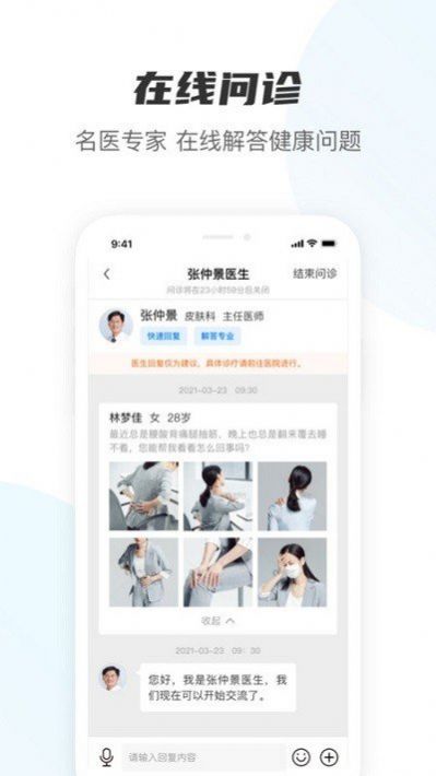 (1)用户在软件里能够通过图文形式与医生开展在线咨询。