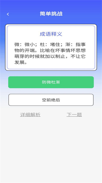 - 答题内容趣味性满满,用户在娱乐过程中,能学到诸多有趣的成语知识,有效提升了学习兴趣。