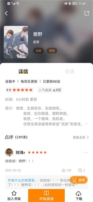 2. 点击打开自己喜爱的漫画,查看具体的介绍内容。