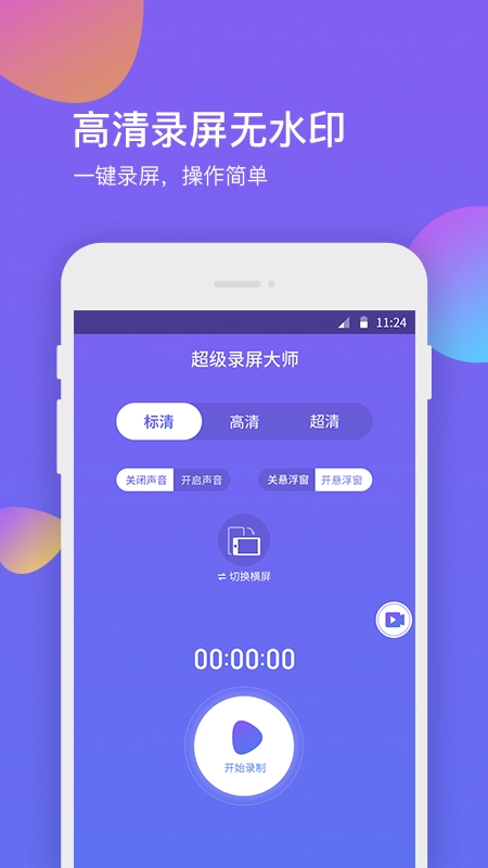录屏大师具备横屏与竖屏录制功能,还支持悬浮窗录制以及游戏直播。此外,提供标清、高清、超清等多种视频画质供您选择。