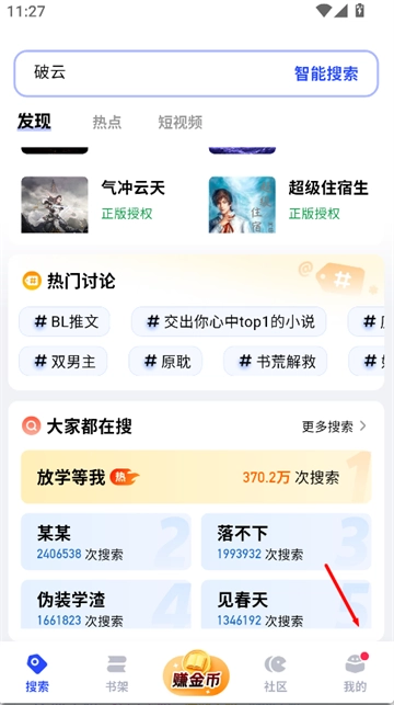 1. 来到搜索页面,点击右下角“我的”,从而进入个人中心。