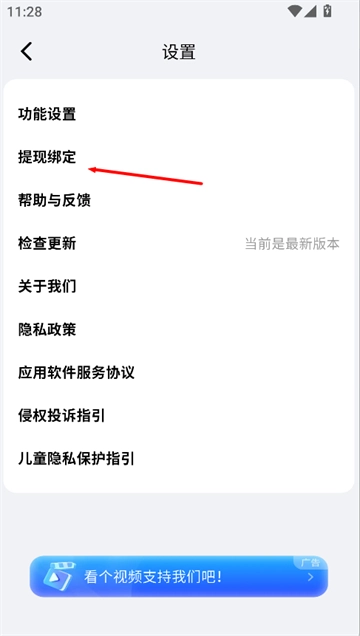 3、点击“提现绑定”,进入账户绑定页面。