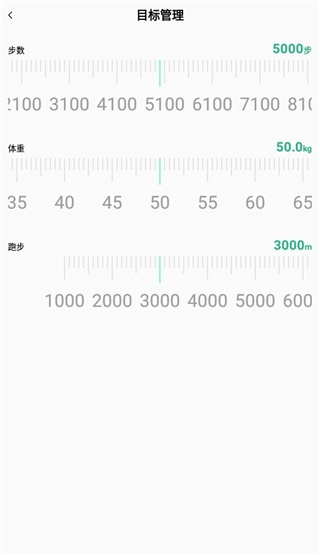 4、用户能够对自身运动目标进行管理,依据个人需求,自由设置步数、体重、跑步等相关信息。