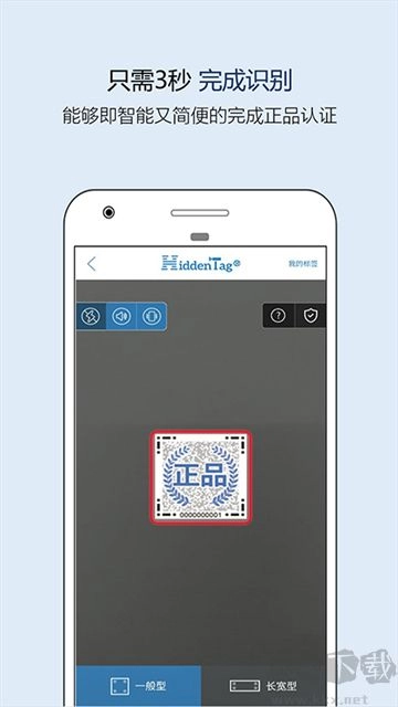 2、扫描防伪码:开启HiddenTag应用,用摄像头对准产品外包装的防伪码扫描。扫描完成后,应用会提示输入验证码。