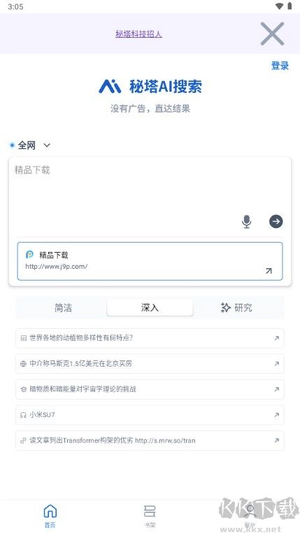 秘塔AI搜索专业版,堪称功能超强的AI技术搜索软件。借助它,用户能轻松畅享便捷使用体验。其搜索功能更是出类拔萃,无论用户想探寻何种类型的知识,该软件都能即刻在线查找。而且,它的搜索速度极快。感兴趣或有需求的小伙伴,赶紧前往kk网站体验一番吧。