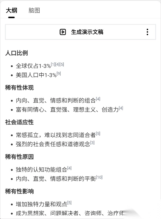 3、借助AI功能,能轻松生成大纲、思维导图以及用于展示的演示文稿,有效提升工作效率。