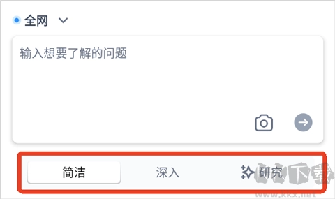 1. 输入你感兴趣的内容,可灵活在简洁模式、深入模式与研究模式中选择,还能自定义搜索范围,涵盖全网、文库、学术、图片、博客等领域,精准获取所需信息。