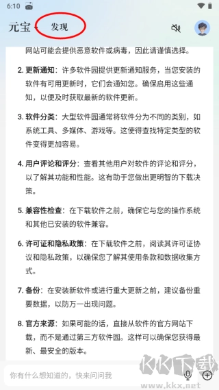 腾讯元宝手机版,是一款借助大数据与AI智能工具,为用户提供全方位使用助力的手机软件。它深受众多办公与学习用户青睐,成为他们的得力手机辅助软件。软件内部免费提供丰富多样的学习及办公辅助工具,能让用户快速、及时地搜索并了解各类问题,获取精准的搜索内容。不仅如此,用户还能依据自身使用需求,添加各类插件工具,甚至创建属于自己的智能体来使用。