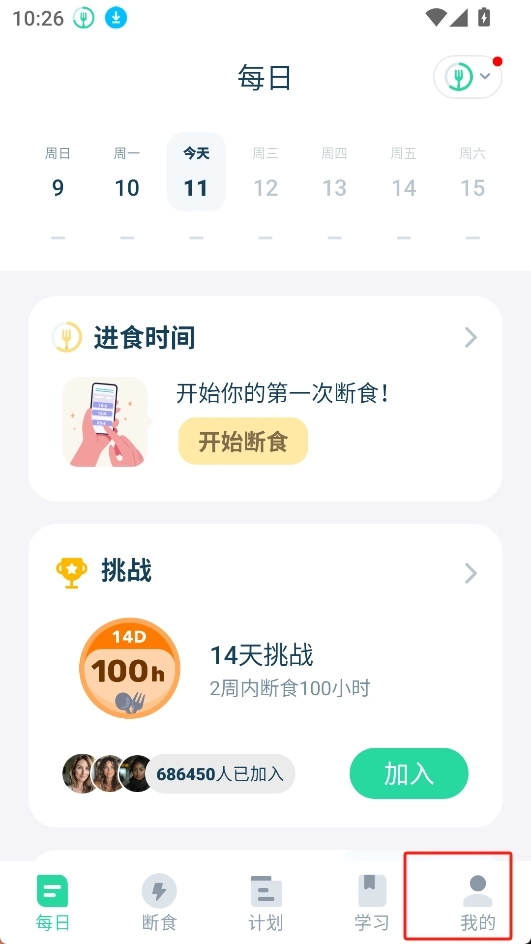 2. 可自定义断食周期,依据个人作息对进食窗口进行调整。