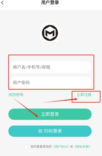 2、输入用户名/手机号/邮箱和密码,点击立即登录即可,没有账号的点击立即注册