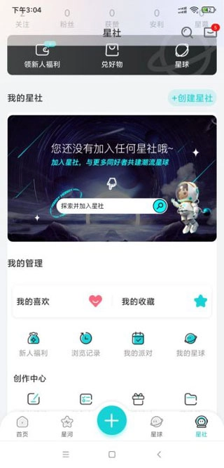 6、点击星社,便能查看自身的名称、账号、关注等信息。