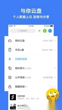 我的照片:把全部照片安全备份到“与你云”,无单个手机的限制,可在各种设备上查看分享。