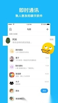 与你是一款免费的即时通讯软件,在5G流量充沛的时代,为用户供给“聊天通讯”以及“私人云盘”等服务,使你的隐私数据愈发安全,聊天形式更为多样。