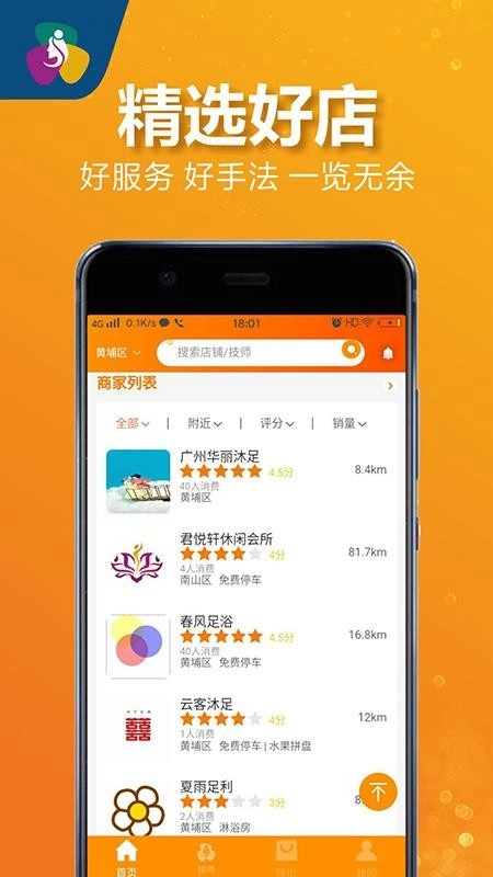 为用户呈现周边足浴场所,用户定位自身位置后即可查看。