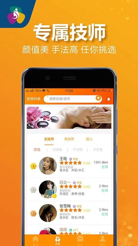 提供海量的专业技师,用户可以自由选择需要的技师为你服务;