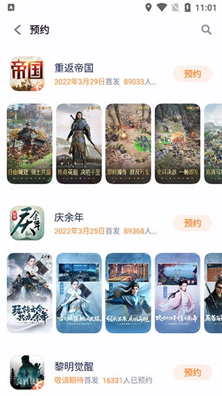 5、点击首页中的预约,即可查看即将发布的各种首发游戏。