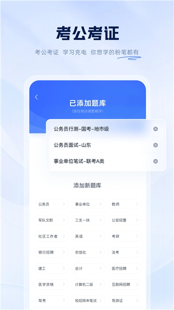 粉笔将会为用户提供丰富的题库资源,让用户可以在平台中备考来成功上岸。