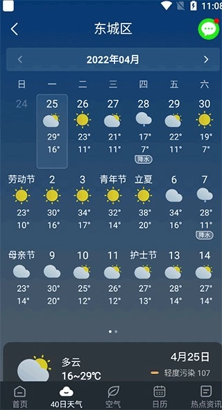 2、当然,我们很多朋友出门时想了解的是接下来几天的天气情况,这时候就可以点击“40天气”选项,查看大致的天气预报。