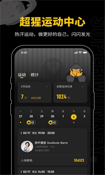 清爽设计的超级猩猩运动中心,在这里一站式管理你的运动日程安排、查看你的运动数据,还有猩相册、月度报告都可以一键直达…热汗运动,做更好的自己,闪闪发光啊猩!