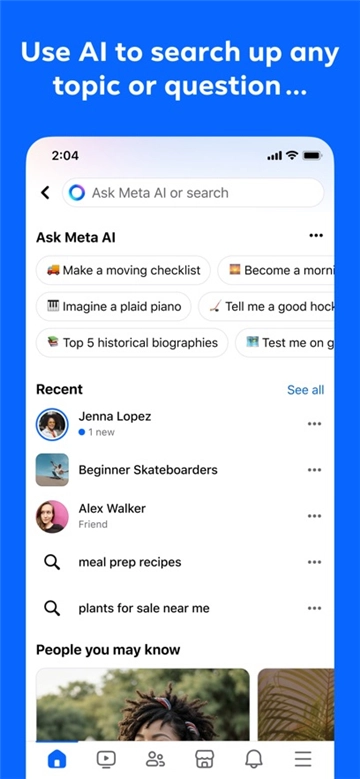 * 让 Meta AI 搜索你感兴趣的主题,即刻获得比纯文本更具互动性的结果