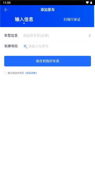 3、最后,我们输入好爱车的车型和车牌号,点击保存到我的车库,这样我们就添加爱车信息成功了