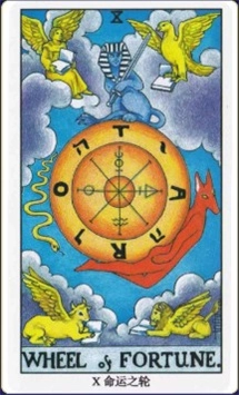 天上的轮子不停转动,表示命运也如同轮子般不停的转变,正谓“十年河东,十年河西”,“风水轮流转”,转机似乎已经在眼前前。