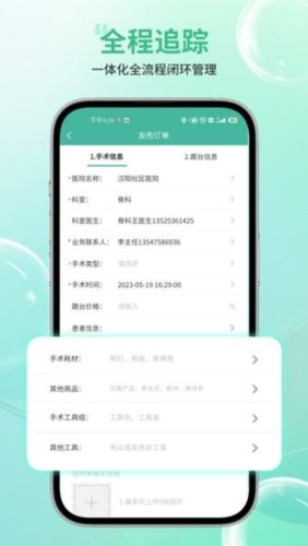 骨科嫦娥智慧系统是一款功能强大的骨科跟台软件,覆盖多个科室,用户可在手机端便捷查看最新跟台订单、进行钉盒管理及待办订单事项查看。此外,通过手机即可完成扫码出库与验货操作,大幅提升了工作效率与便捷性。该系统为器械厂家、经营企业及医院提供全方位服务,包含手术报台在线下单、智能接单、快速出库、物流配送、AI识别抽检验货、线上收货、AI识别计算消耗、清点消耗回库、智能补货、术后结算等功能,全面实现复杂植入物手术周期全流程闭环智慧化管理,为提升业务效率、降低运营成本提供了有力支撑。
