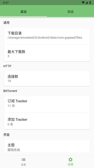 3. 你也可以对包含的连接数量以及Torrent所用的Tracker进行设置,其最高线程数可达256。