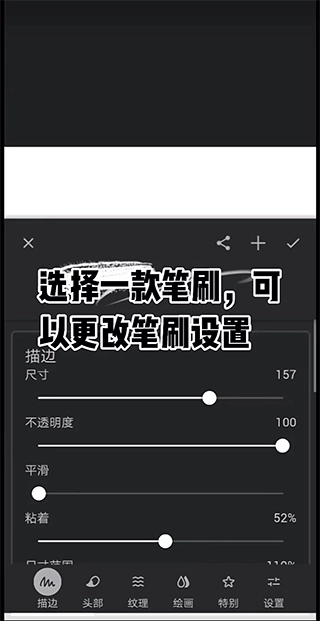 7、在进行描边操作时,用户能够挑选一款笔刷来调整其设置,操作起来十分便捷。