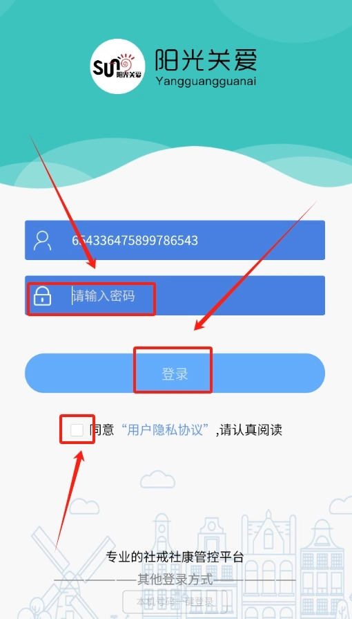 3、接着在密码栏输入对应的密码,勾选同意软件相关协议,随后点击登录按钮,完成操作。