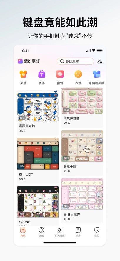 2、好听好看好玩的皮肤,让键盘,歌唱起来。