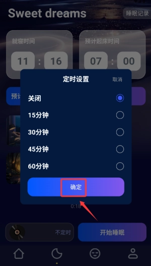 登录应用后,在首页底部找到“睡眠设置”功能并点击,即可进入定时管理页面。