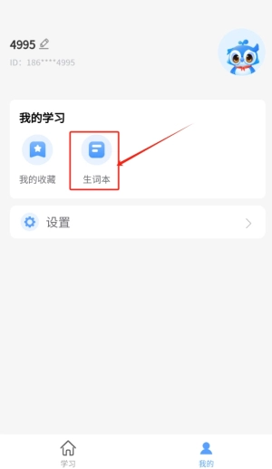 3、打开生词本进行查看,便于记录和复习刚学的单词,以此提高语言学习的成效。