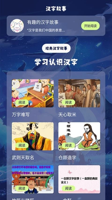 1、启动应用后,在首页选择"汉字故事"功能进入故事专区。