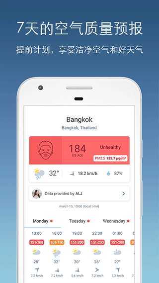如果你计划前往某个城市旅行,也可以通过它提前查看未来七天的天气预报和空气污染预报,以便合理规划后续行程。