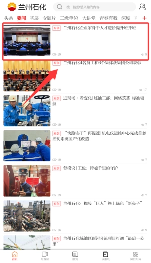 1、启动兰州石化后,在首页顶部导航栏中找到蓝色"要闻"标识,点击即可进入企业重要资讯专区。