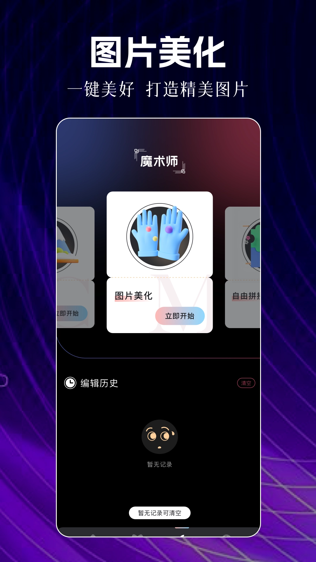 2、配备丰富实用的美化工具,支持在应用内直接对图片进行编辑美化操作,并且所有编辑处理过的作品都会被系统自动记录保存,用户可随时查看或导出这些作品。