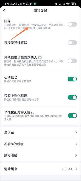 4、在最上面的隐身后面的开关这打开它就可以了。