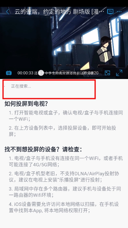 3、然后,开始搜索同wifi下的设备,切记电视和手机要处于同一wifi环境下;